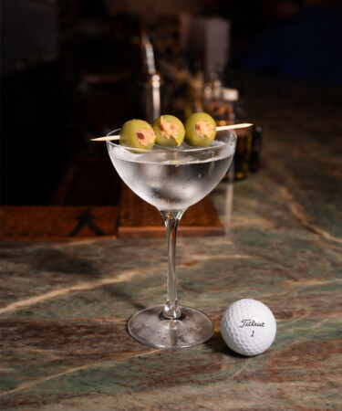 To that, the team adds a blend of white vermouth, crisp white wine, and dry sherry — basically a house-made dry aperitif. “The wine adds bright acidity, the vermouth brings botanical and floral notes, and the sherry lends a subtle savory, nutty complexity,” says Robson. The last components are house brine and saline to unify and balance the drink. It’s served ice-cold with three pimento cheese-stuffed olives. “It’s a cocktail that feels both classic and unmistakably rooted in the spirit of the Masters,” says Robson. No matter what happens on the course, if you sip one of these, you’ll feel like a winner.