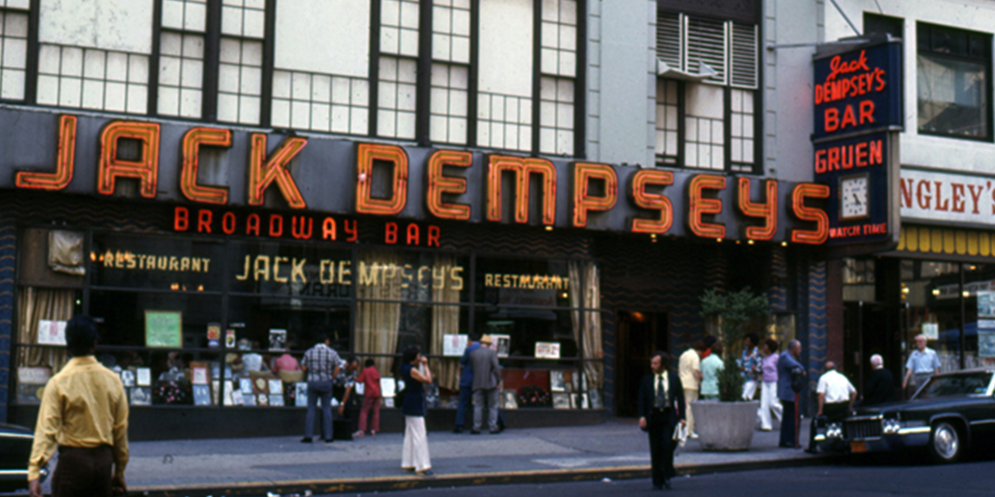 This was the grand opening of Jack Dempsey’s Restaurant, owned by and named after the former boxing champion, who greeted his customers while clad in a black morning coat with a Kewpie doll lapel pin.