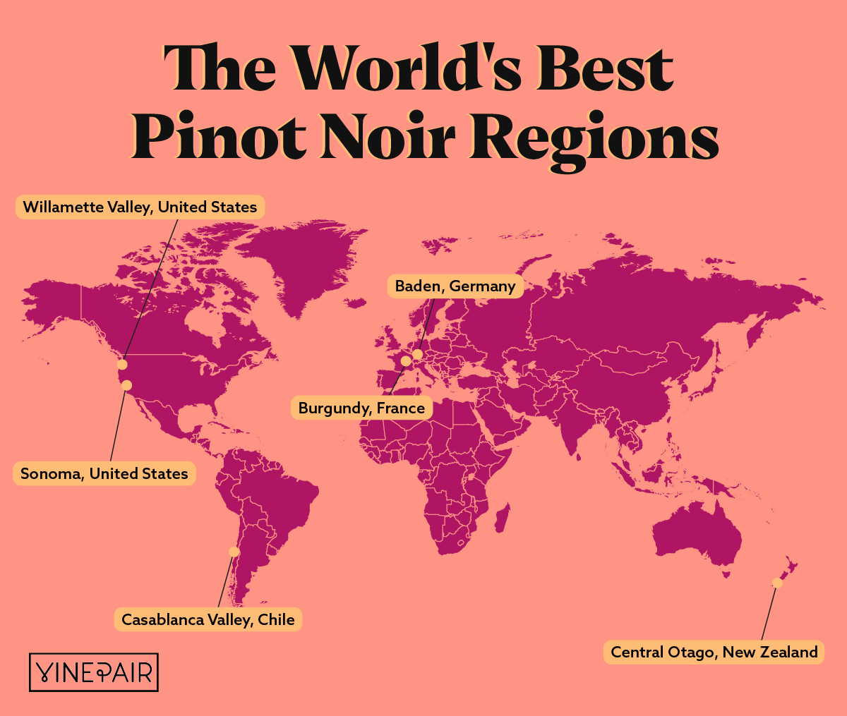 Nicknamed the “heartbreak grape,” Pinot Noir is a notoriously finicky grape that’s known as one of the most challenging to grow. And yet, it produces what is undeniably one of the sexiest and most sought-after red wines in the world. When done successfully, Pinot Noir is capable of perfectly mirroring the terroir in which it’s grown, resulting in expressive bottlings with distinct tasting notes that differ from region to region. Considering Pinot Noir’s ability to reflect the land, it’s crucial to know which regions of the globe to look toward when hunting for a quality bottle.