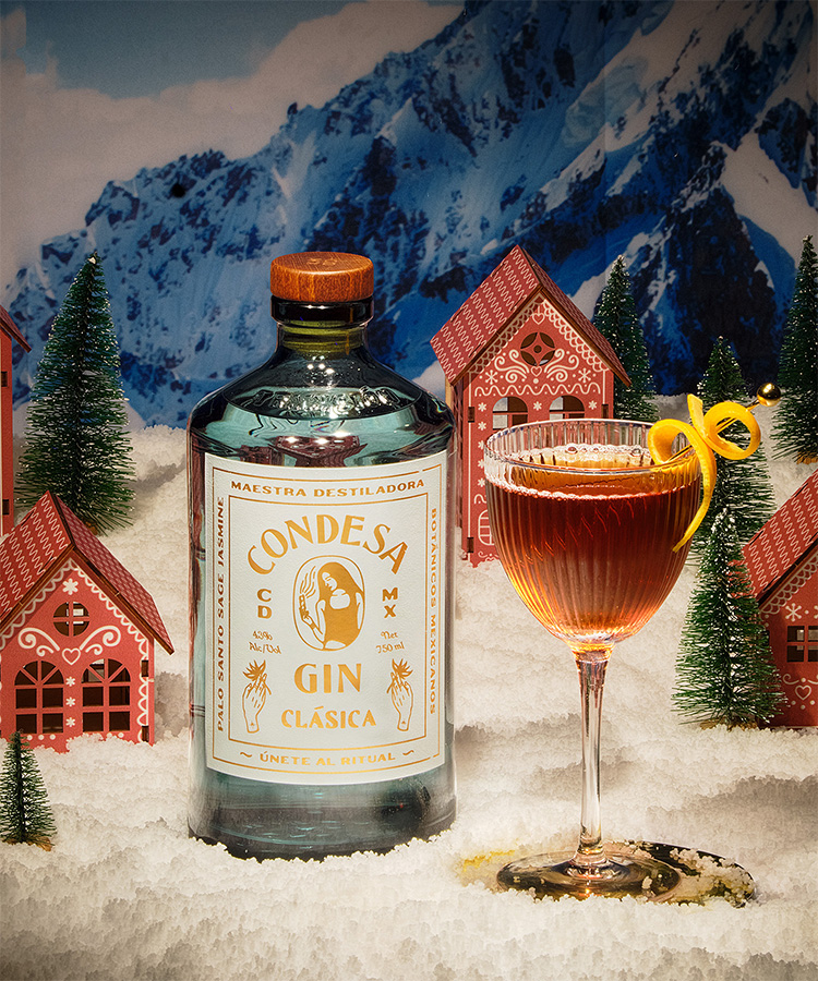 An elegant cocktail with flavorful tidings of joy, the Condesa El Mexicano Martinez is a must-try this holiday season. A partnership between two Condesa gins that fill the glass with dancing notes of juniper, prickly pear, and orange blossoms. Sweet Vermouth, Maraschino liqueur, and a dash of bitters add a further balanced depth of flavor.