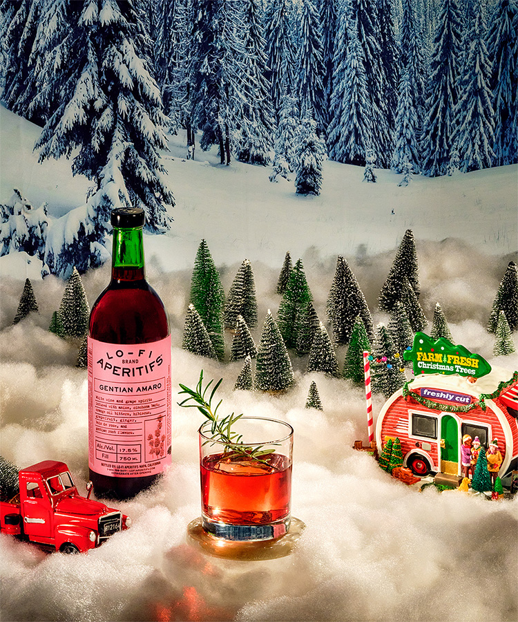 When it’s cold outside, here’s a delicious way to watch the elements from a cozy vantage point. Single malt whiskey, sweet and spicy Lo-Fi Gentian Amaro, and a spoonful of maple syrup make this cocktail a holiday hit (no matter the weather). Ensure this beautiful red drink is dressed for the occasion by garnishing each glass with a sprig of toasted rosemary.
