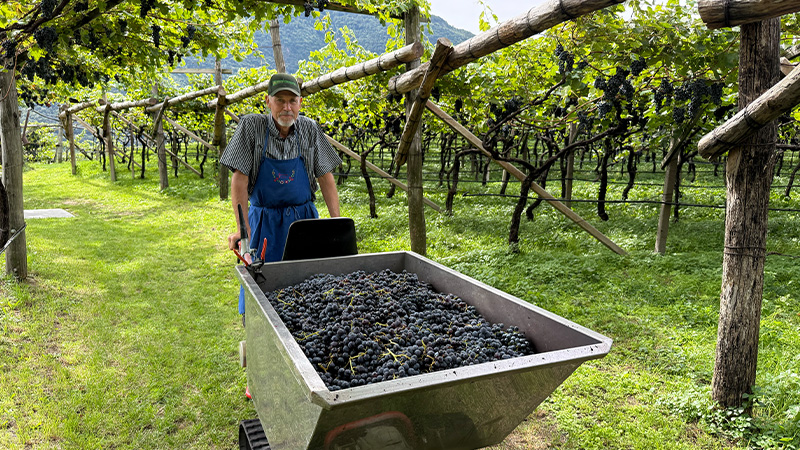 “This place is very warm, protected by the mountains against the north winds, and for this we have a very special climate for our wine,” says Josephus Mayr, a winemaker and chairman of the St. Magdalener wine protection consortium. Almost all the vineyards use the ancient pergola vine training technique to protect against too much sun.